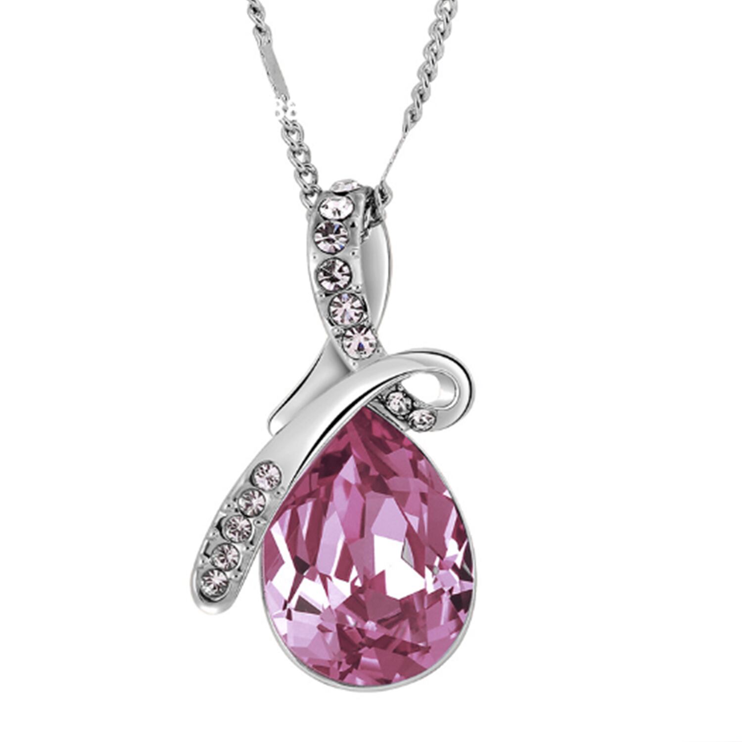 大振りのドロップペンダント。カラー:ピンクパープル。人口水晶