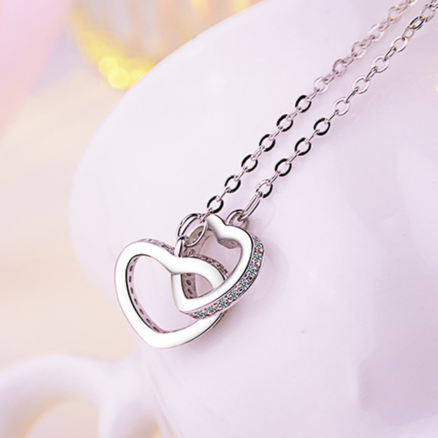 高品質のジルコニアを使用した可愛らしいダブルハートデザインのペンダント。